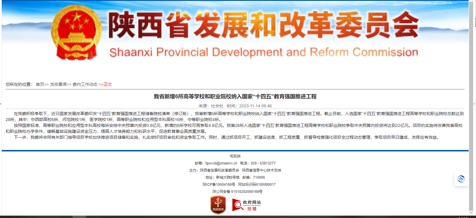 按照國家標準,高等職業(yè)院校和應(yīng)用型本科高校每所安排中央預(yù)算內(nèi)投資0.8億元,新增的6所學校可再爭取4.8億元。陜西省28所入選國家“十四五”教育強國推進工程高等學校和職業(yè)院校爭取中央預(yù)算內(nèi)投資將達到22億元。項目的實施將改善陜西省高校和職業(yè)院校辦學條件,緩解基礎(chǔ)設(shè)施建設(shè)資金壓力,提高人才培養(yǎng)能力和科研水平,促進教育事業(yè)高質(zhì)量發(fā)展。