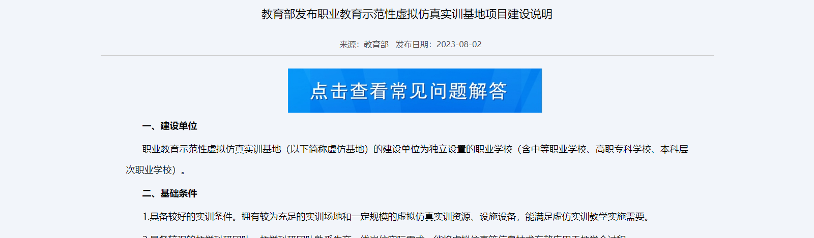 教育部發(fā)布職業(yè)教育示范性虛擬仿真實訓(xùn)基地項目建設(shè)說明