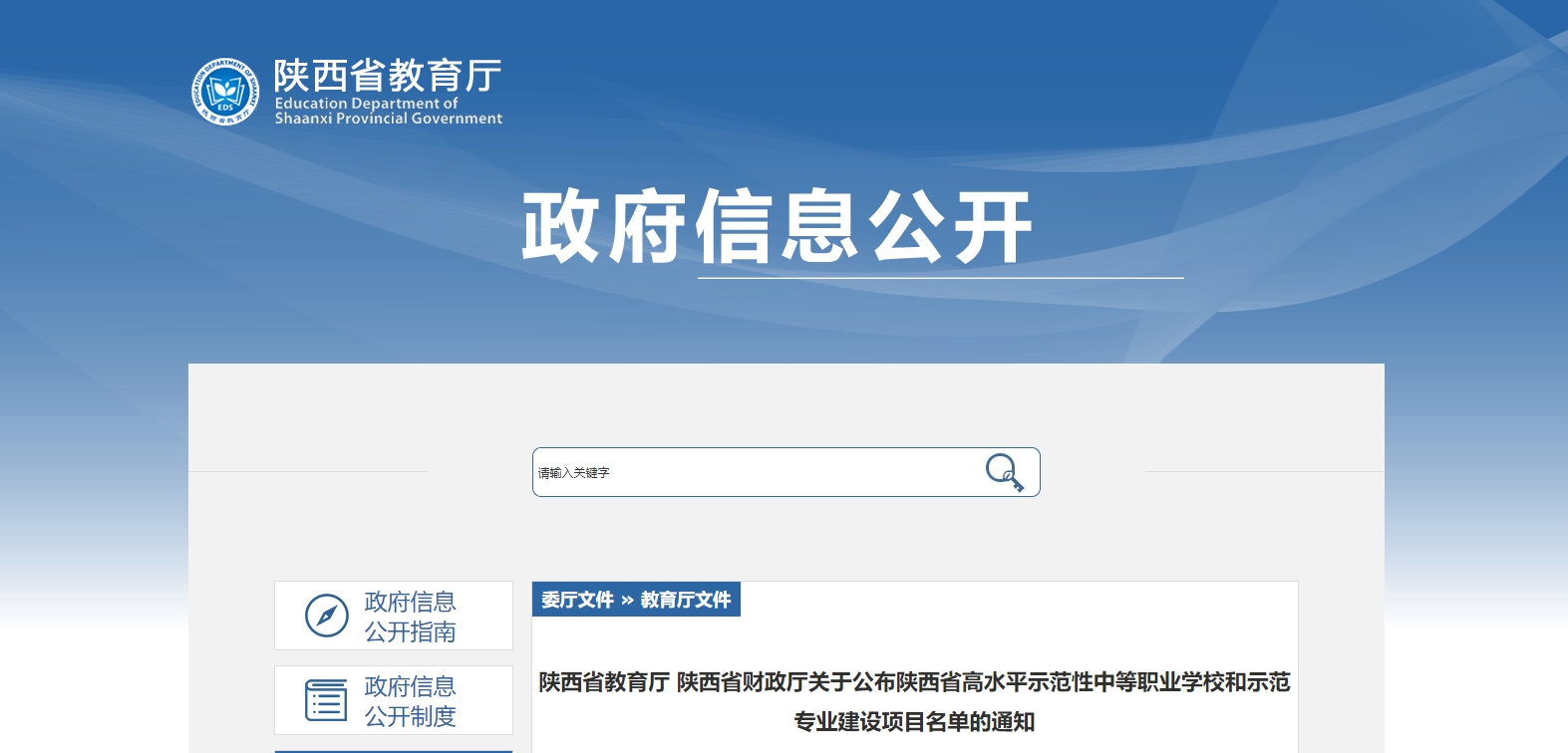陜西省教育廳、陜西省財政廳公布陜西省高水平示范性中等職業(yè)學(xué)校和示范專業(yè)建設(shè)項目名單