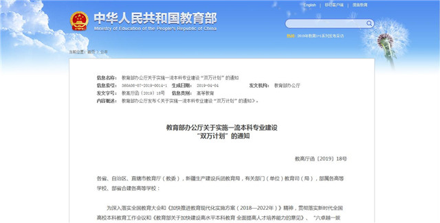 教育部:啟動一流本科專業(yè)建設(shè)“雙萬計劃”