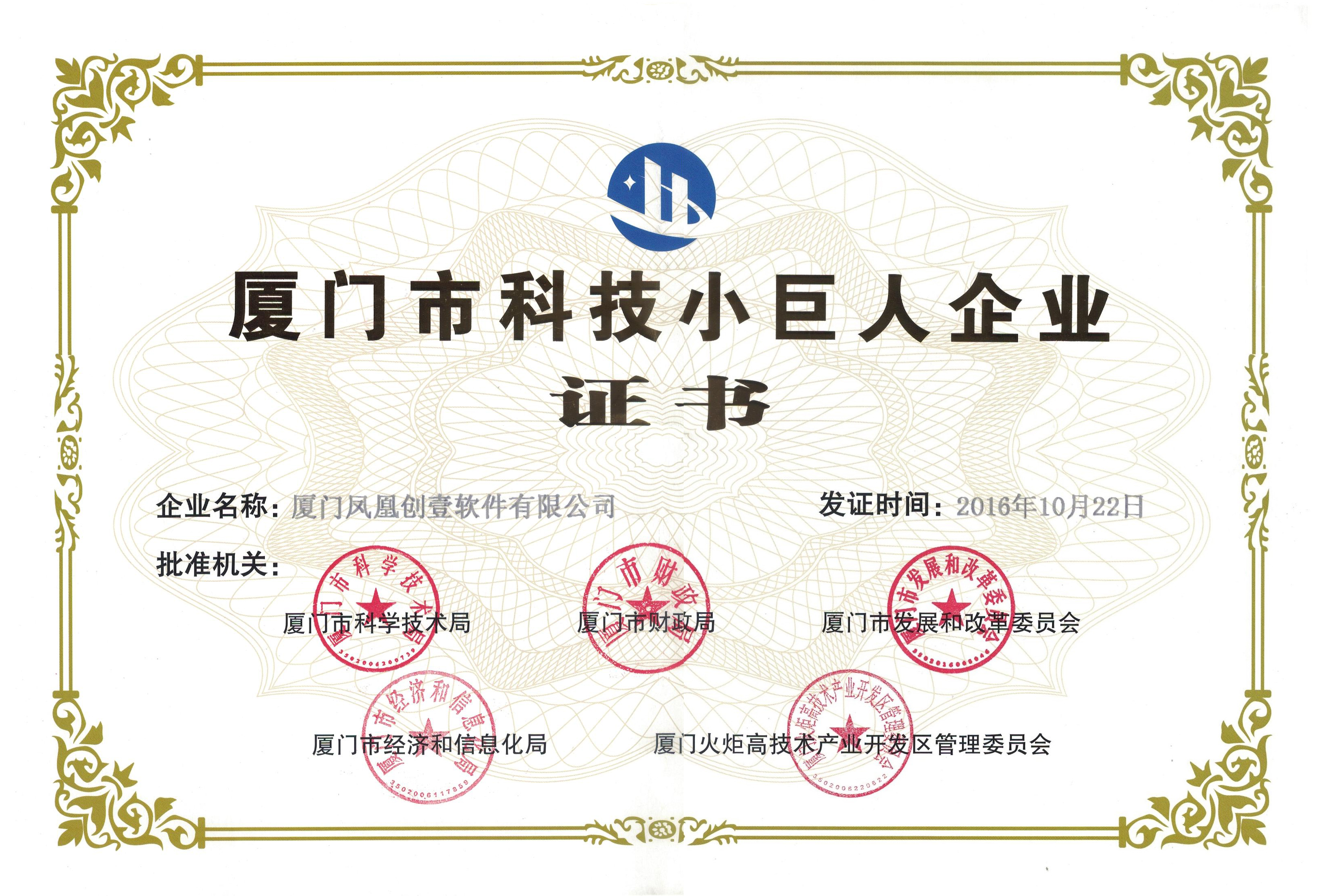 近日,市科技局、財政局、發(fā)改委、經(jīng)信局和火炬管委會五部門聯(lián)合公布了2016年廈門市科技小巨人企業(yè)和領(lǐng)軍企業(yè)名單。今年共有346家企業(yè)入選“廈門市科技小巨人企業(yè)庫”,本公司(廈門鳳凰創(chuàng)壹軟件有限公司......