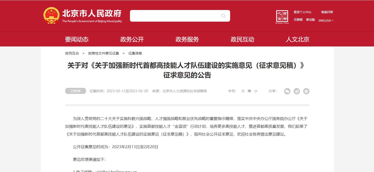 北京市近日發(fā)布《關(guān)于加強新時代首都高技能人才隊伍建設(shè)的實施意見(征求意見稿)》,提出21條建設(shè)高技能人才隊伍的舉措。其中明確推動職業(yè)學(xué)校畢業(yè)生在就業(yè)、招聘、職稱評審等方面與普通高校畢業(yè)生享受同等待遇。