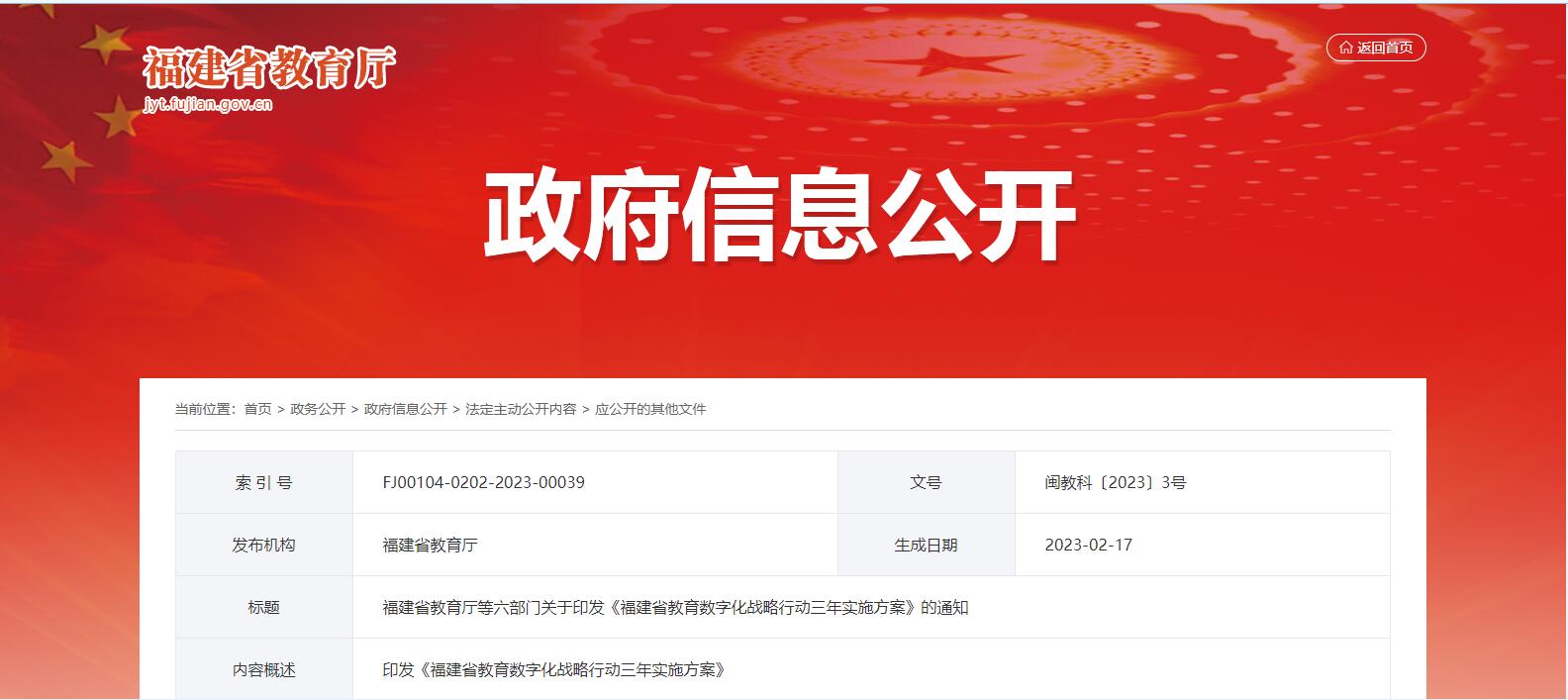 福建省教育廳等六部門關(guān)于印發(fā)《福建省教育數(shù)字化戰(zhàn)略行動三年實施方案》的通知