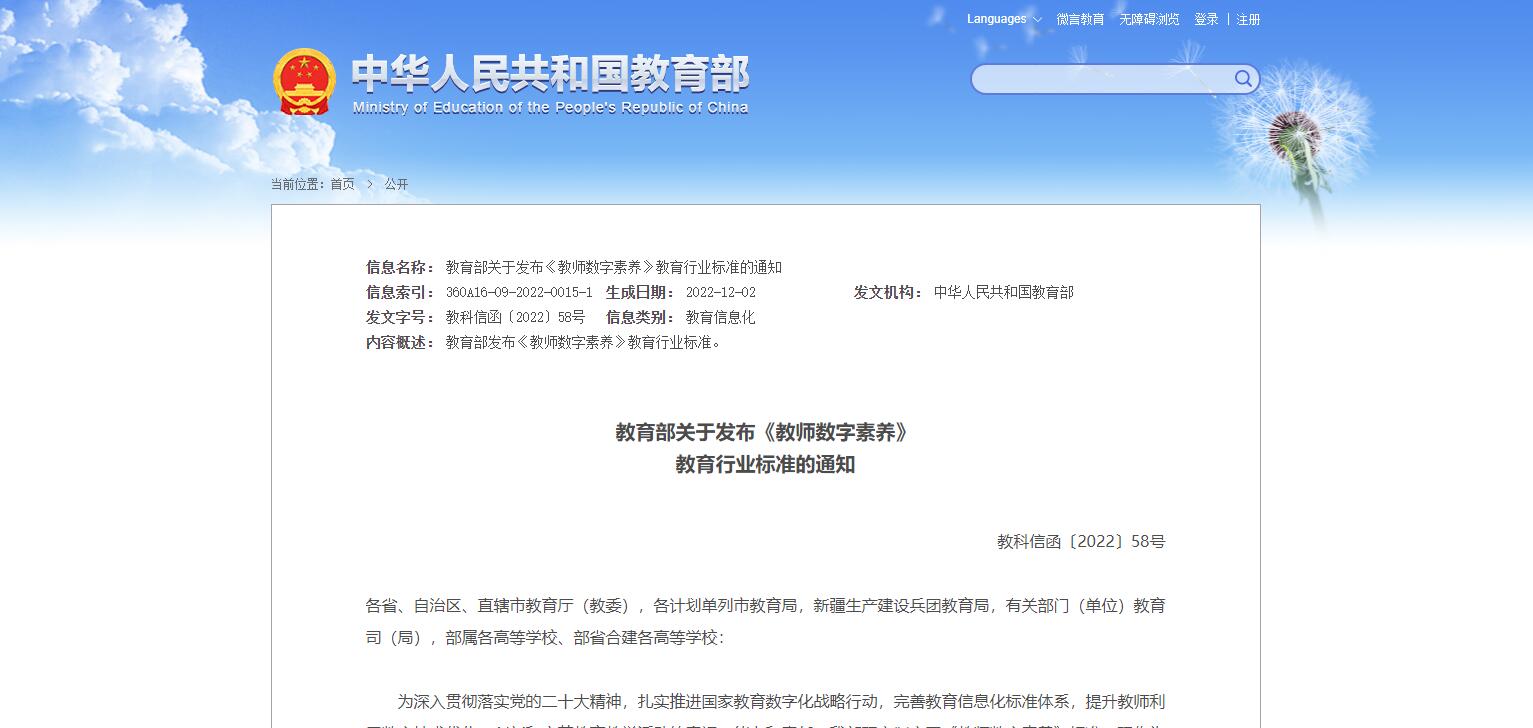 教育部關(guān)于發(fā)布《教師數(shù)字素養(yǎng)》教育行業(yè)標(biāo)準(zhǔn)的通知